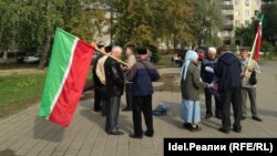 Пока большинство казанцев праздновали сегодня день города и республики, чуть больше десяти пожилых мужчин вышли в пикет в сквер Тинчурина, чтобы отпраздновать другой важный для них праздник – 26 лет со дня принятия декларации о государственом суверенитете Татарстана.