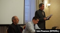 Неожиданное соседство ждало собравшихся в конференц-зале отеля Шаляпин: батюшки, люди с крестного хода и митинга, посвященного Дню народного единства, мусульмане, представители ДУМ РТ. А через несколько минут за одним столом окажутся Дамир Исхаков, историк и сооснователь Всемирного конгресса татар, Михаил Щеглов, лидер Общества русской культуры, и Раис Сулейманов из Института национальной стратегии, в качества модератора. "Idel.Реалии" о том, как почти три часа шесть десятков человек обсуждали место татар в "русском" и "российском мирах".