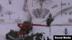 "На металлические прутья "елки" повесили портреты президента Владимира Путина, премьера Дмитрия Медведева, губернатора Николая Меркушкина, мэра Тольятти Сергея Андреева и других политиков. Необычная "елка", которую назвали "вертикаль власти", сразу привлекла внимание полиции и чиновников, которые потребовали снять портреты. Мы отказались. Но все равно ближе к вечеру среды неизвестные сняли с "полит-елки" портреты политиков. В четверг власти решили устроить общественную елку вместо "полит-елки". Под руководством чиновников мэрии работники службы благоустройства вставили в каркас сосновые ветки, превратив его в настоящую елку", - рассказал "Idel.Реалиям" тольяттинец Михаил Борисов.
