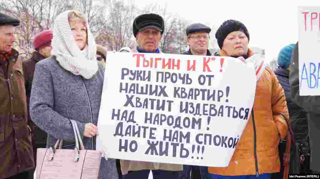 Около 70 человек вышли сегодня на главную площадь Зеленодольска, чтобы потребовать отставки главы района Александра Тыгина, разобраться в проблемах ЖКХ и отменить программу переселения из аварийного жилья.