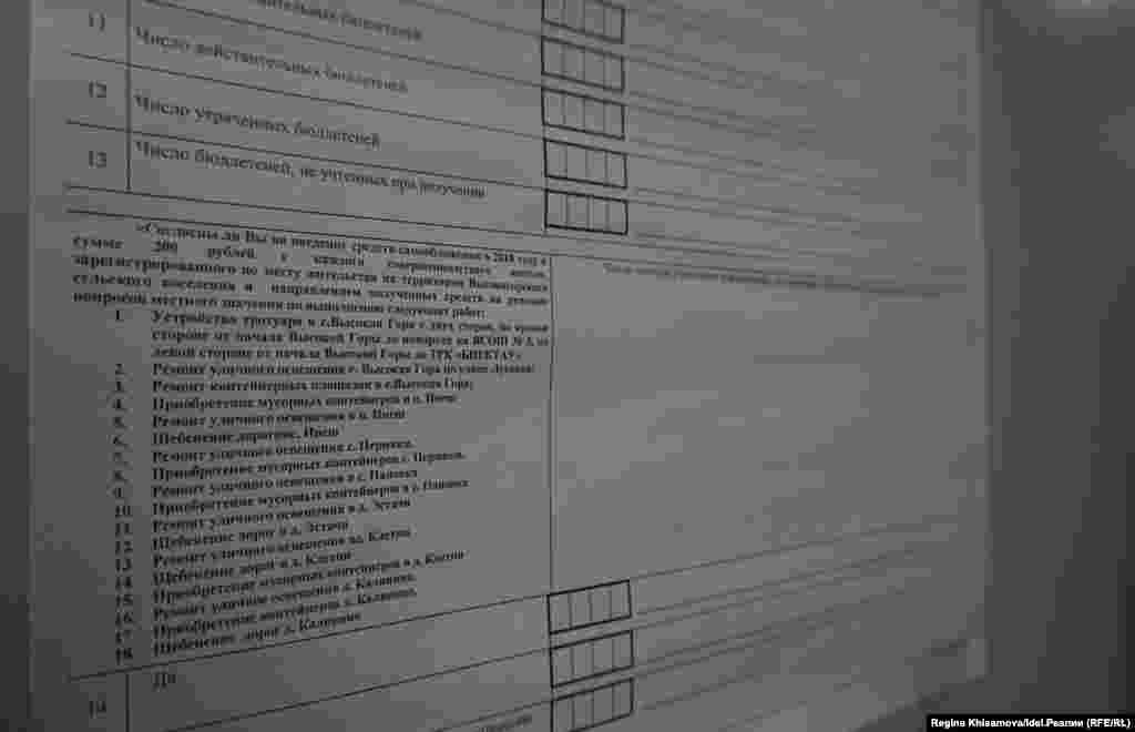 Из 18 статей расходов, утвержденных решением советом Высокого сельского поселения Высокогорского муниципального района РТ, лишь три предусматривают финансирование благоустройства Высокой Горы. В частности, при участии народного софинансирования планировалось отремонтировать тротуары и контейнерные площадки, а также установить уличное освещение. Неудивительно, что абсолютное большинство сельчан предпочло не пользоваться своим избирательным правом.