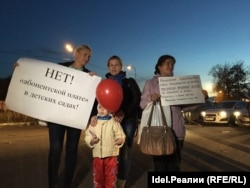 В сентябре на окраине Казани рядом с перерабатывающим заводом на улице Васильченко прошел митинг, посвященный отмене "абонентской платы" в детских садах. В акции приняли участие около 60 человек.