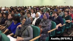 Итак, всего собралось не больше 45 человек. Председатель Милли Шуры ВКТ Василь Шайхразиев активно вещал о важности Стратегии развития татарского народа. Вещал так долго, что несколько женщин в зале начали возмущаться: "Мы на электричку опоздаем!".
