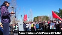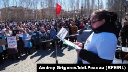 Регина Саляхова, председатель общественного движения "Народный контроль" (она вместе с Ляпуновым и Агишиным являлась соорганизатором митинга), перечислила факты из статьи "Idel.Реалии", опубликованной 21 марта: "Совсем недавно в СМИ вышло большое расследование по деятельности управления образования..."