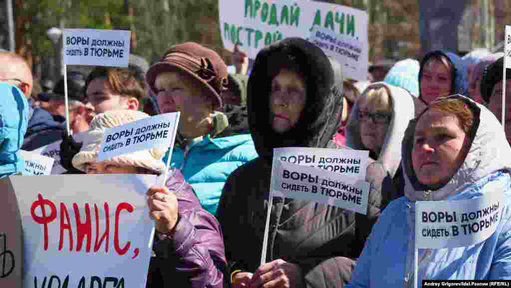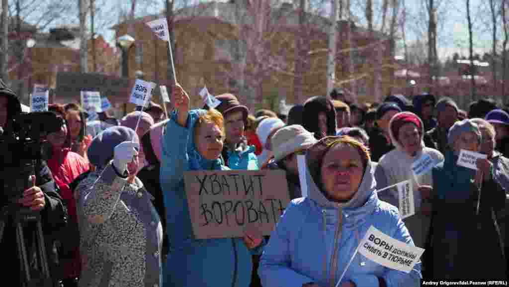 Свыше тысячи участников собралось 14 апреля в Елабуге, на старом майдане. Жители города предпочли антикоррупционный митинг официально спущенному "сверху" празднику встречи весны (последний был экстренно назначен на эту же дату администрацией Елабуги.