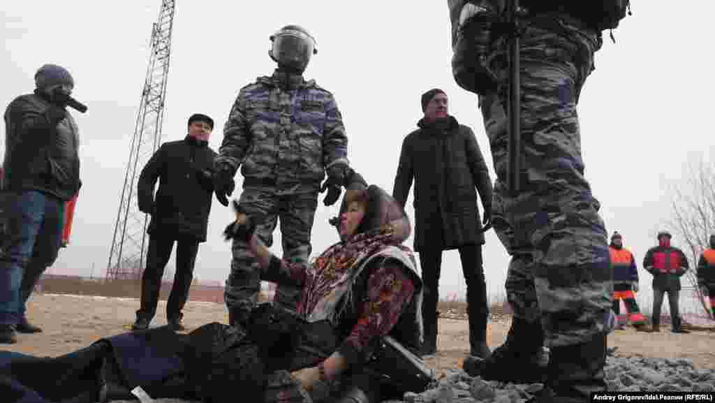 16 декабря утром палаточный лагерь Диоксиново, разбитый на пути к месту строительства мусоросжигательного завода был разогнан. Противники строительства МСЗ пытались выстроиться в живой щит, ОМОНовцы скрутили их и затолкали в автобусы. Сотрудники МЧС потушили костер, горевший в лагере эти две недели. Корреспондент "Idel.Реалии" запечатлел задержания активистов. За событиями под Казанью следите в нашем онлайне.