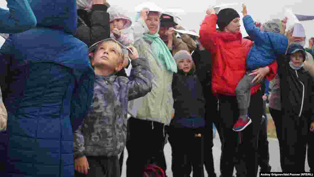 На автодороге у села Тарлаши, вдоль которого проектировщики планируют протянуть магистраль, собралось около семисот человек. Люди стояли вдоль трассы, держа в руках буквы, которые складывались в названия их населенных пунктов. Затем участники схода выстроилось в гигантские буквы так, чтобы сверху можно было прочитать слово "Стоп". Организаторы снимали акцию с квадрокоптера.