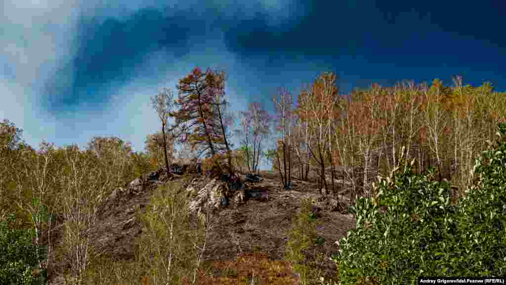 Десятки километров бездорожья отделяют это место на юге Башкортостана от ближайшей автотрассы. Ближайший населённый — пункт деревня Уразбаево Хайбуллинского района — находится от внешнего мира ещё дальше. Неудивительно, что тушение пожара здесь сопряжено с большими сложностями. И это притом, что местным жителям, можно сказать, ещё повезло — здесь бушевали так называемые низовые пожары, опаливающие главным образом траву и нижние части деревьев.