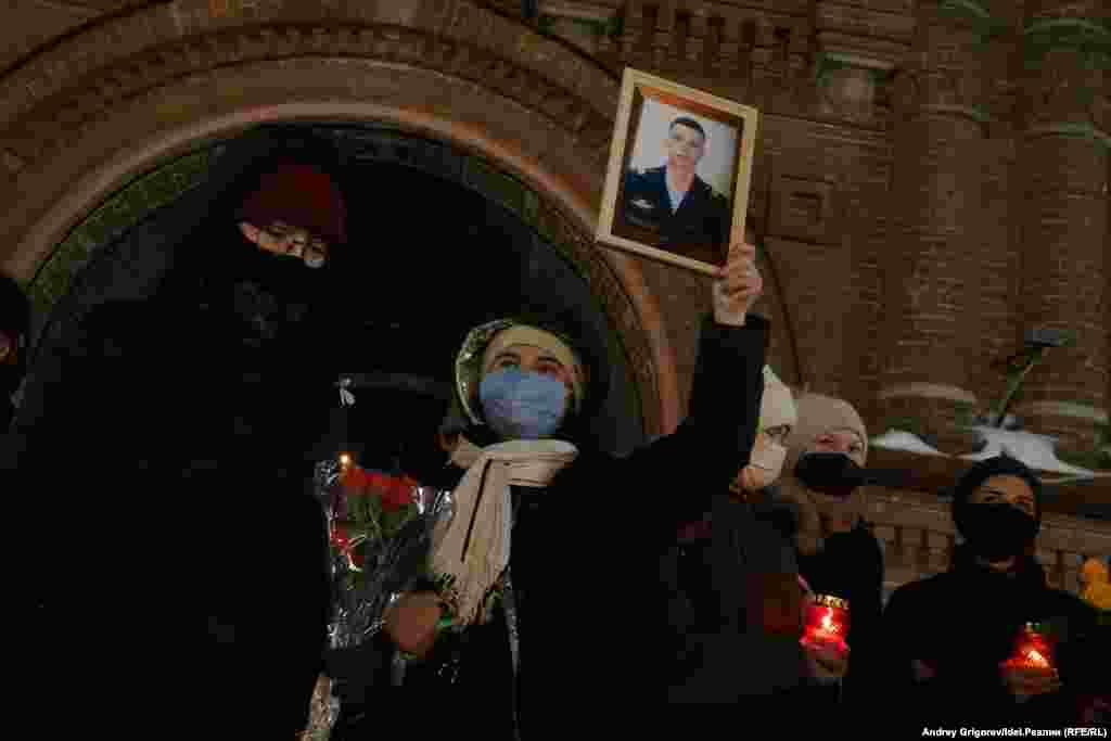 У них были цветы, свечи и портрет первого официально признанного погибшим контрактника из Татарстана — уроженца Нижнекамска Ильнура Сибгатуллина.