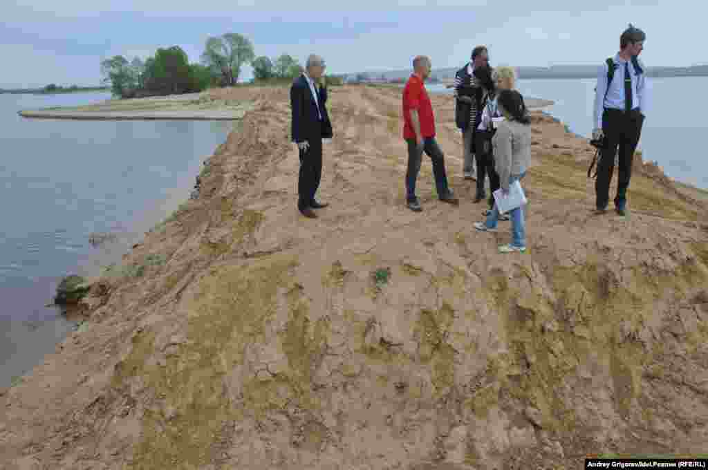Перед вами уникальные кадры 2015 года: чиновники Минэкологии Татарстана вместе с экоактивистами и жителями Займища обследуют земельные участки, намытые на Волге структурами олигарха Равиля Зиганшина. Можно заметить, что новая суша возвышается над водой на несколько метров. Причем рабочие уже успели частично уложить коммуникации (например, торчащую из бархана трубу на заглавном фото) и установить несколько опор будущего моста.