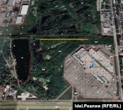 Работы, ведущиеся в парке, зафиксировали сразу двое казанских активистов. По словам одного из них, забор протянулся от задворков торгового центра параллельно проспекту Ямашева в сторону озера в парке Победы.
