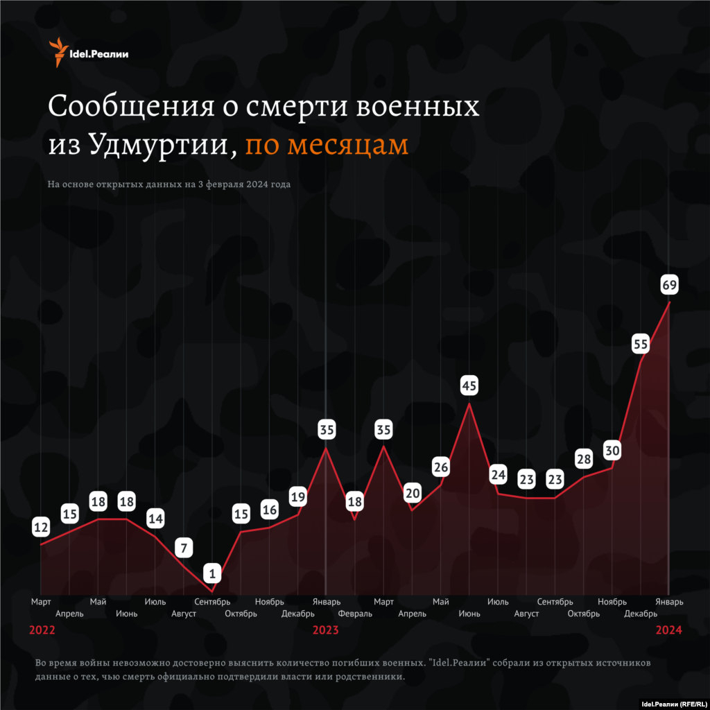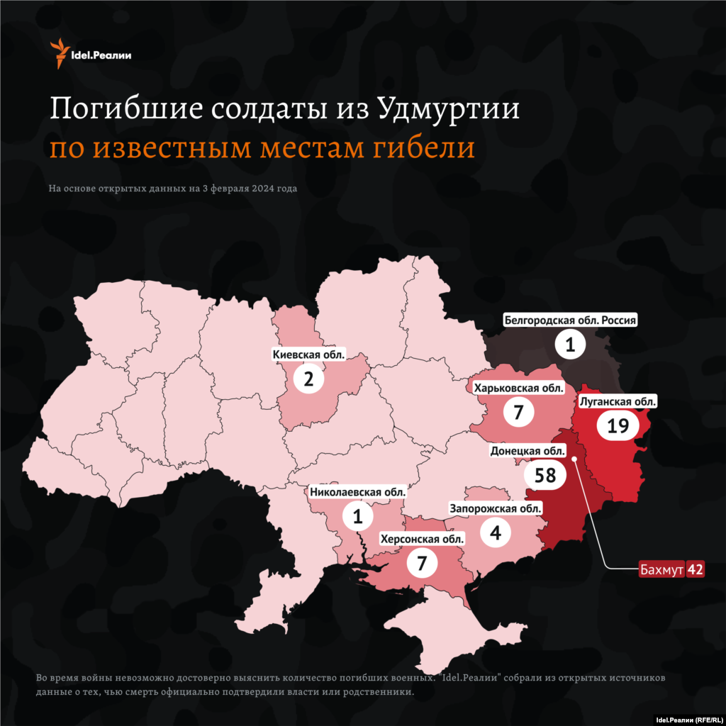 Число погибших в действительности больше, мы руководствуемся лишь данными из открытых источников. По подсчетам "Idel.Реалии", с начала войны погибли 10 305 уроженцев и жителей Поволжья.