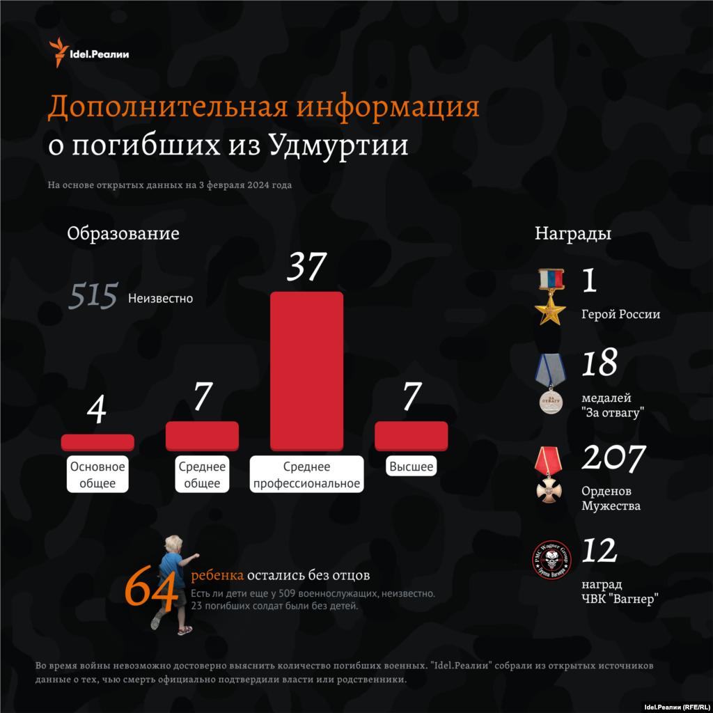"Idel.Реалии" собрали всю известную на данный момент информацию о погибших на войне в Украине уроженцах Удмуртии — возраст, звания, районы, образование, дети, медали и др.