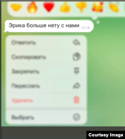 У нее в профиле также есть фотографии, посвященные Эрику. На последней — от 1 августа — скриншот сообщения в Telegram, в котором сказано: "Эрика больше нету с нами".