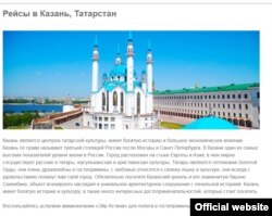 "В Казане (именно "в КазанЕ", а не в КазанИ) один из самых высоких показателей уровня жизни в России", — пишет сайт Air Astana.