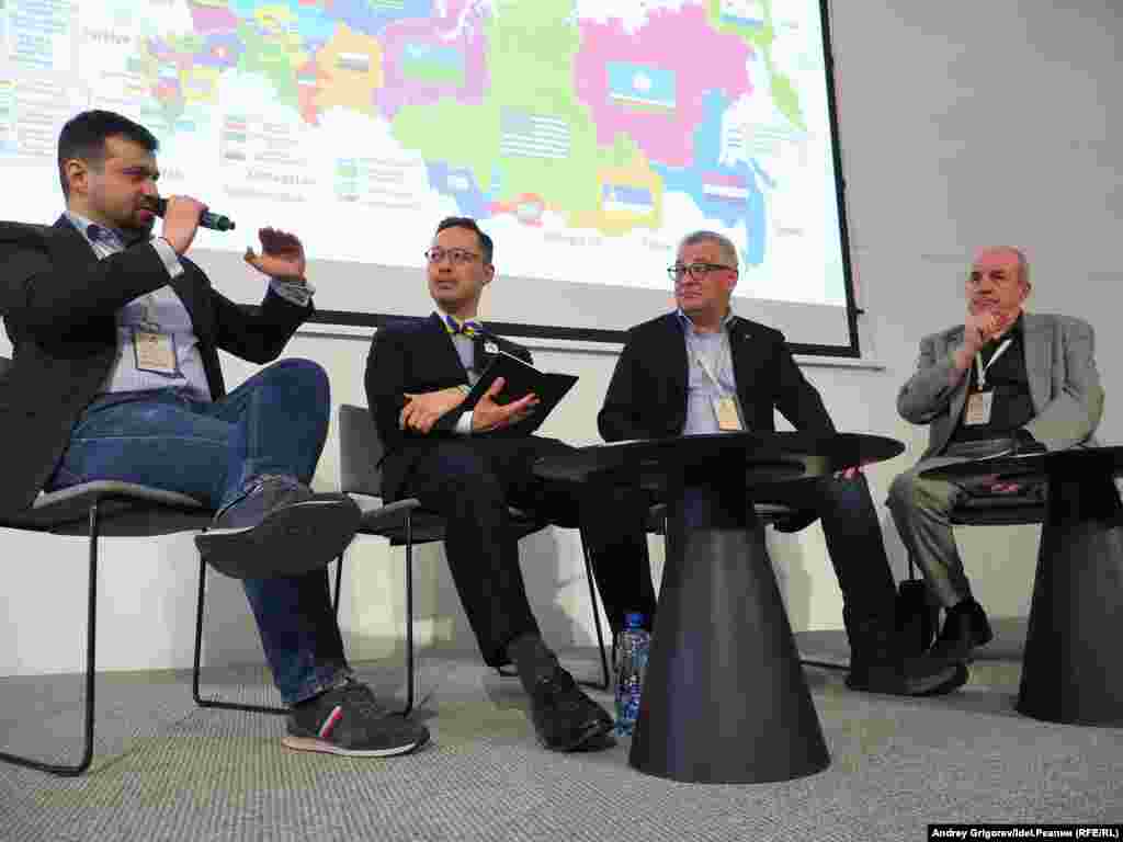 В центре: Станислав Суслов, представитель "Комитета Свободной Сибири". Справа: организатор форума Олег Магалецкий